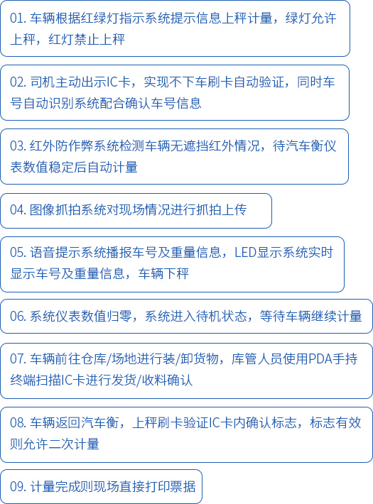 ● 采用先進的紅外光感技術(shù),檢測車輛前輪后輪有無超出衡器范圍、后車是否緊跟壓秤等情況,規(guī)范計量流程。